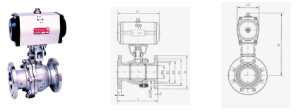Q641F、Q641Y 型 PN16~PN63 气动球阀:气动、法兰连接、浮动球直通式结构形式,阀座密封面材料为PTFE、增强 PTFE塑料(Q641F)、金属堆焊钴基(Q641Y),公称压力 PN16~PN63,阀体材料为WCB、CF8、CF8M、合金钢的球阀。